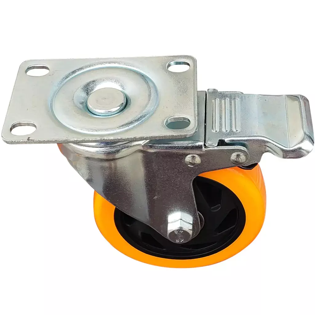 Rueda de PVC con base Giratoria 360° - con freno: 95 mm x 64 mm con orificios de 12 mm x 9 mm