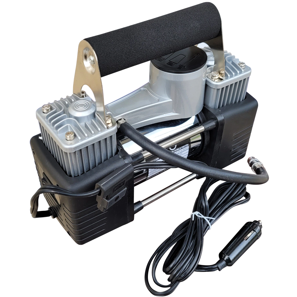 El compresor de aire Vabenne es ideal para camionetas 4x4, autos, bicicletas y pelotas, gracias a su doble pistón y dos cilindros de 30 mm, que garantizan un inflado rápido y eficiente.